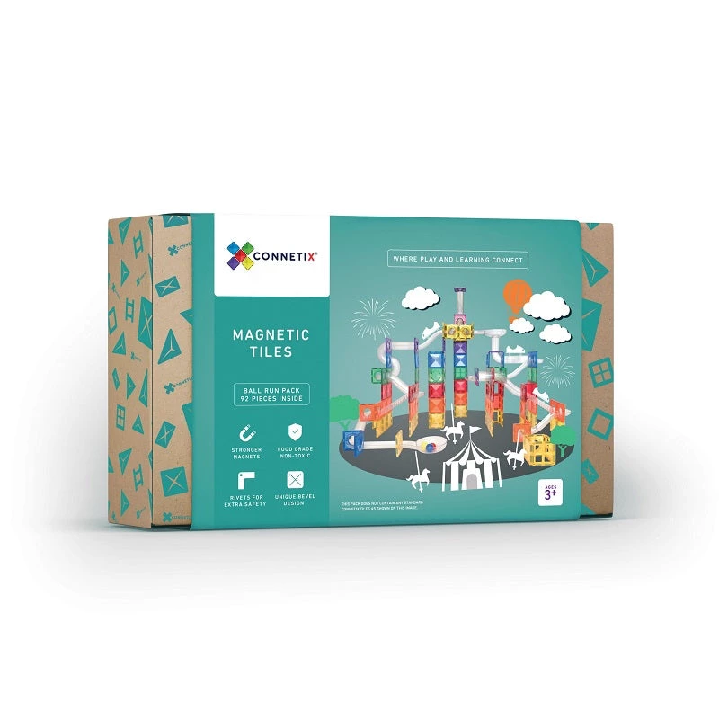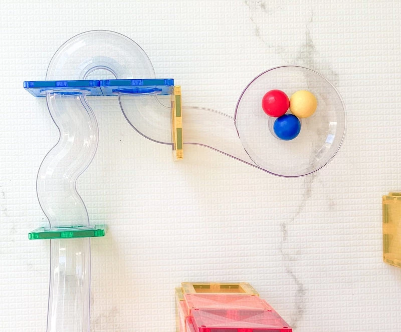 Our piece Ball Run pack with clear fluted tubes so you can see the balls zoom through, 2 x special effects stair case sound scape pieces, 2 x S bend pieces AND a split tube for racing fun…