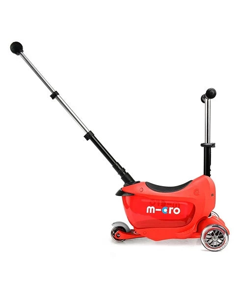 Once they are ready to stand, remove the seat and the Mini2Go Deluxe converts to a stand-on scooter with adjustable handlebar.