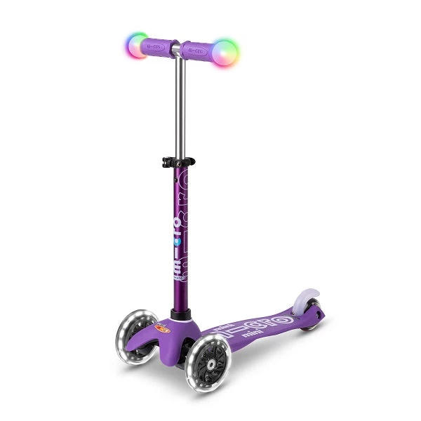 The Mini Micro Deluxe Magic is the brightest preschooler on the block, literally. With new light up handlebars combined with the LED motion powered wheels, kids will love flying around on their magic scooter. The handlebars glow in five different colours changing as they go adding to the fun of scooting!Â