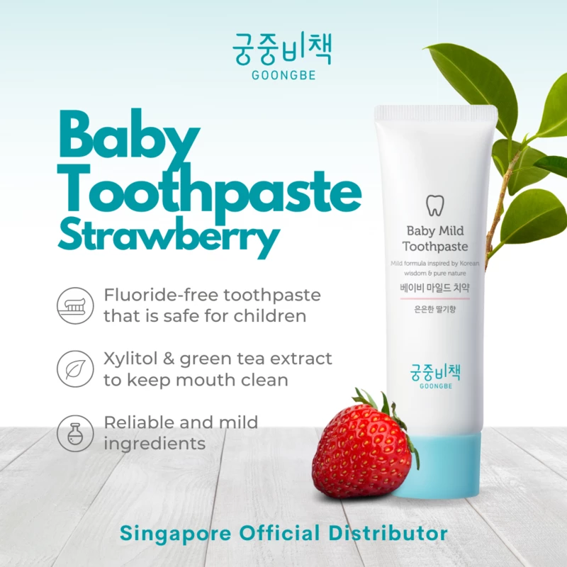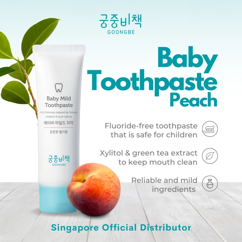 GOONGBE Baby Mild Toothpaste is a gel type flouride-free toothpaste, exudes a fresh fragrance of natural strawberry&peach scent, can effectively removes plague, and not harmful if swallowed. It contains xylitol to prevent tooth decay, recommended for babies of 10-36 months that parents can help them to brush the teeth daily, keep the mouth fresh and comfortable.