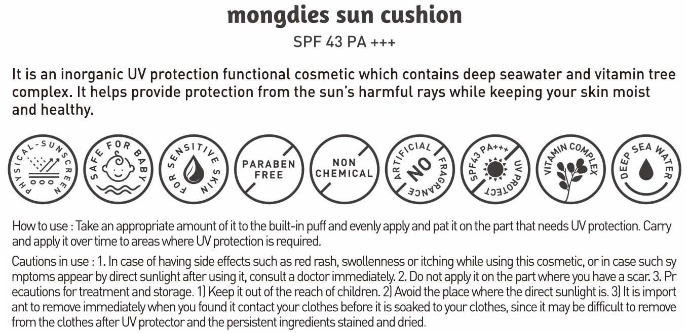 ![Mongdies Sun Cushion SPF43/PA+++ [12g]](https://www.babyhouseshop.com/wp-content/uploads/2022/05/Mongdies-Sun-Cushion-1-3.webp)