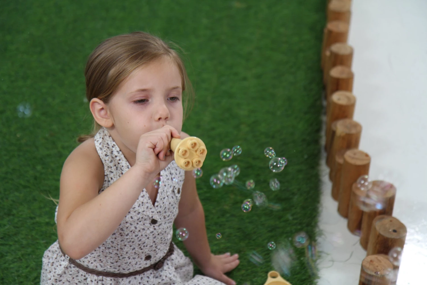 It is a bubble that can be used indoors because it comes out a lot and does not have any residue. Dermat Test A bubble that can be trusted by an excellent grade keeps play with baby more safely. (This refill does not include Blower.)