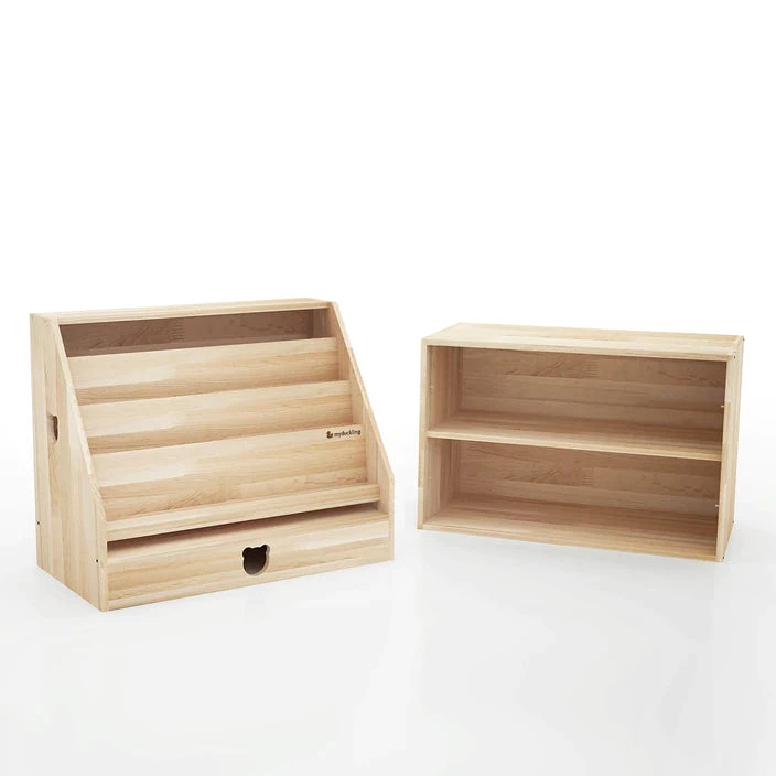 This Kids Solid Wood 2 in 1 Display Bookcase provides more storage space and display for books with space-saving in mind. The top display case can be used to tidy up books or display favourite books. While the bottom storage case (a drawer included) is designed to store toys, pencils and of course more books.