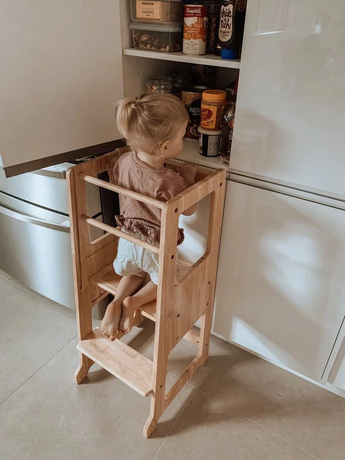 Our Learning Tower is perfectly designed for every family. It encourages your kids to play, learn and assist you in the kitchen and keep them busy and safe by your side.