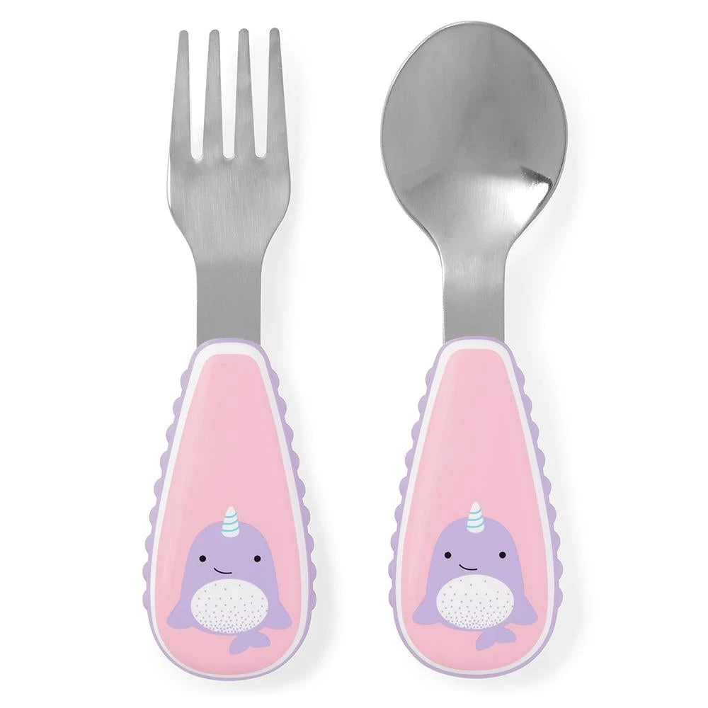 This adorable fork & spoon has soft side grips so it’s easy for little ones to hold. Stainless steel heads make the utensils feel very grown up for little ones!