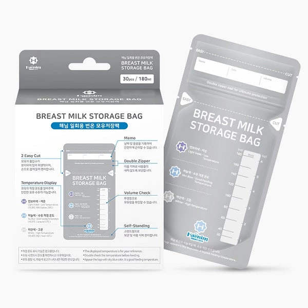 Haenim’s Disposable, Thermal Sensor Breast Milk Storage Bags 1Box (180ml/30pcs)